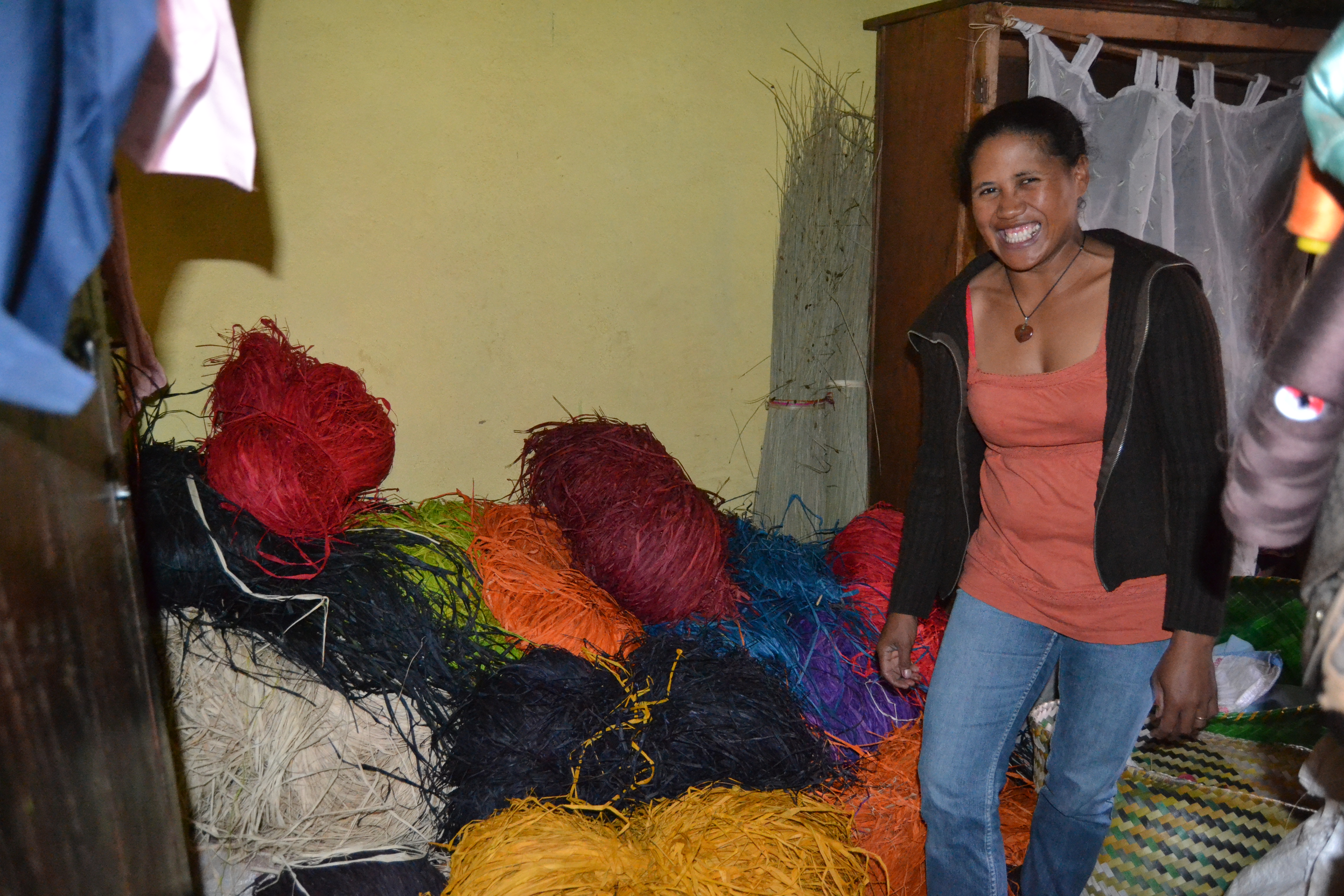 Mit dieser neuen Maschine kann Sarindra ihr Sortiment diversifizieren und nebst Tischsets nun auch Vorhänge herstellen.